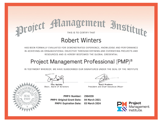 - Satisfy the 36 hour formal project management training requirement for PMI®’s PMP® professional certification.