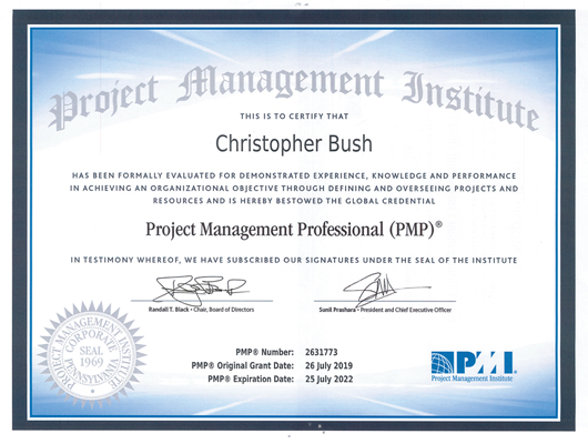 - Apply PMI® recognized project management tools, techniques and methods during the 5 process groups of planning, execution and monitoring and controlling and closing